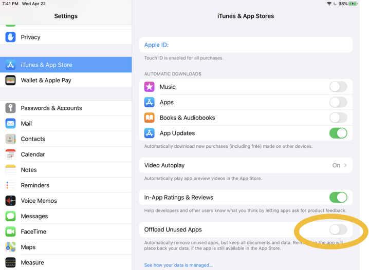 - Tap on “iTunes & App Store” and you’ll see the option for “Offload Unused Apps.”